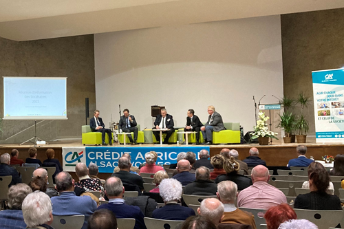 > Et les réunions d'information aux sociétaires qui se sont tenues du 18 mars au 29 avril. L’occasion idéale pour échanger directement avec les représentants de votre Caisse locale, du Conseil d’Administration et de la Direction de la Caisse régionale.