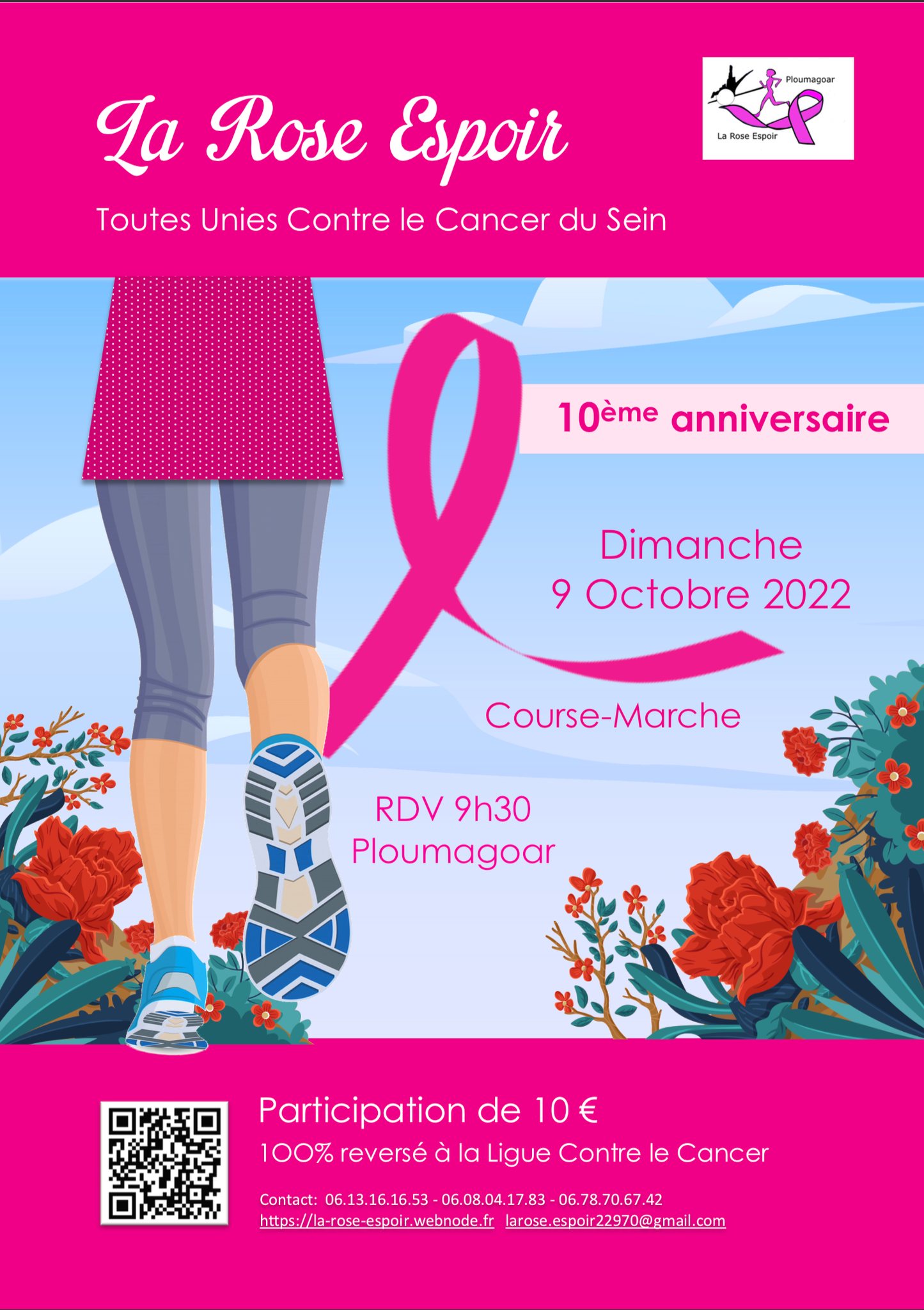 Très attendue depuis 2 ans, la Rose Espoir fait son grand retour le dimanche 9 octobre 2022 à partir de 9h30 à Ploumagoar pour sa 10e édition !