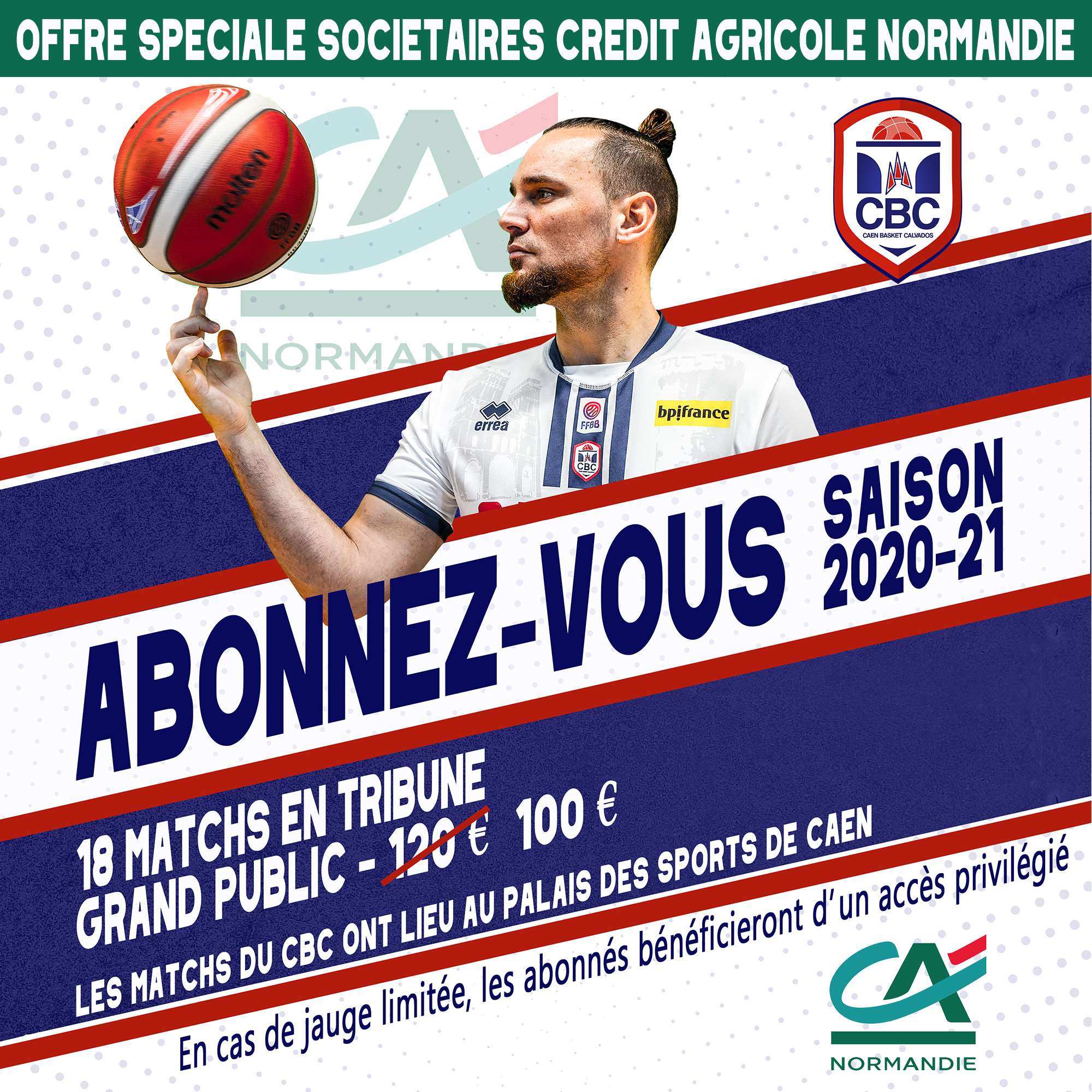 Abonnement à 100€ TTC pour la saison sportive 2020/2021